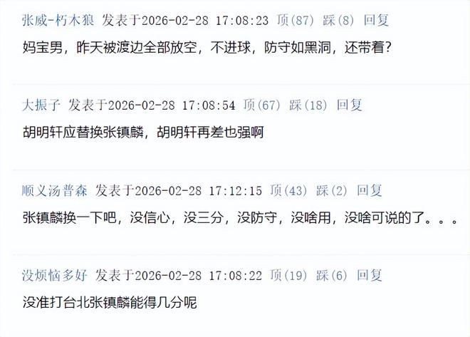 ——胡明轩应替换张镇麟,胡明轩再差也强啊
